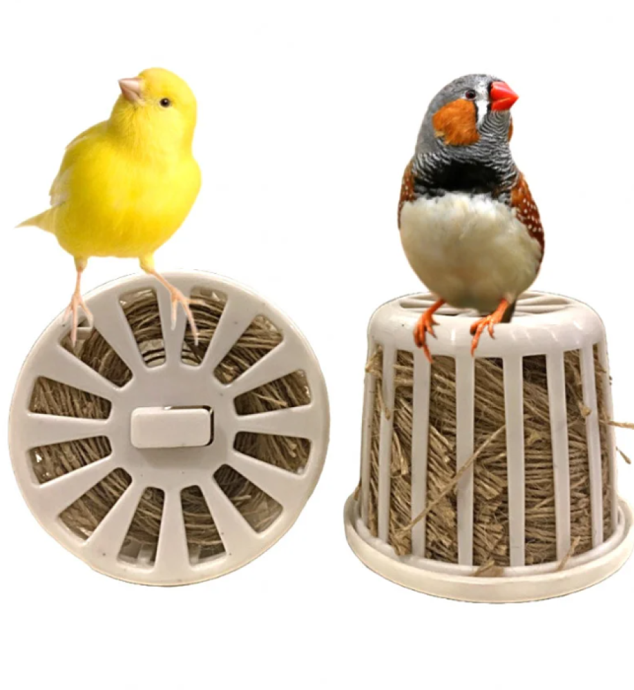 سلة خيوط مصنوعة من البلاستك بجودة ممتازة يتم تثبيتها داخل القفص ليأخذ منها العصفور الخيوط ؛ تتناسب مع طيور الكناري الحسون الزيبرا.