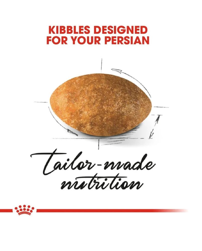 قطعة الطعام (kibble) صمّمت بشكل “لوزي” خاص ؛ مناسب للهيكل الفموي المميز للقطط الفارسية ؛ مما يسهل التقاطه والمضغ والتقشير، كما يساعد في العناية بالفم والأسنان